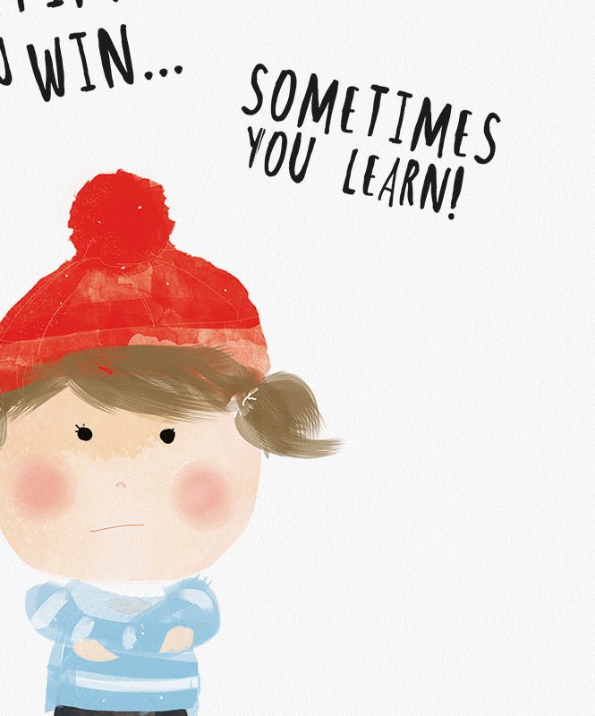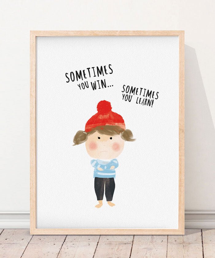 Poster with a girl dressed in a blue t-shirt and a red hat and with the phrase “ Sometimes you win… Sometimes you learn! ”. A fun illustration that fits perfectly in the decor of children's rooms.