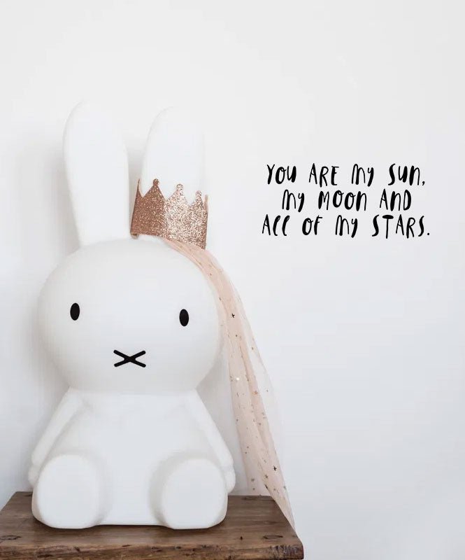 Walldecal. Quick, easy, inexpensive, our " You are my sun, my moon and all of my stars " wall decal makes any wall look instantly special and is guaranteed to put big smiles on the little ones' faces.