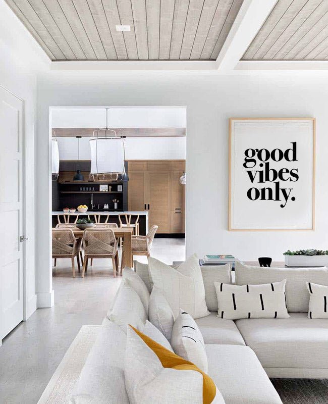 Poster com a frase “Good Vibes Only”. Uma ilustração que encaixa perfeitamente na decoração da sua casa. Este poster pertence à coleção Frases e Citações e é uma ilustração original Catitaillustrations.
