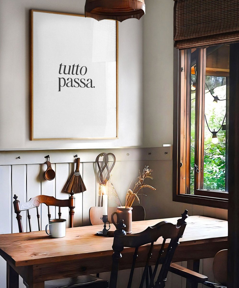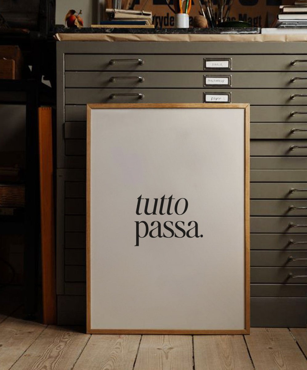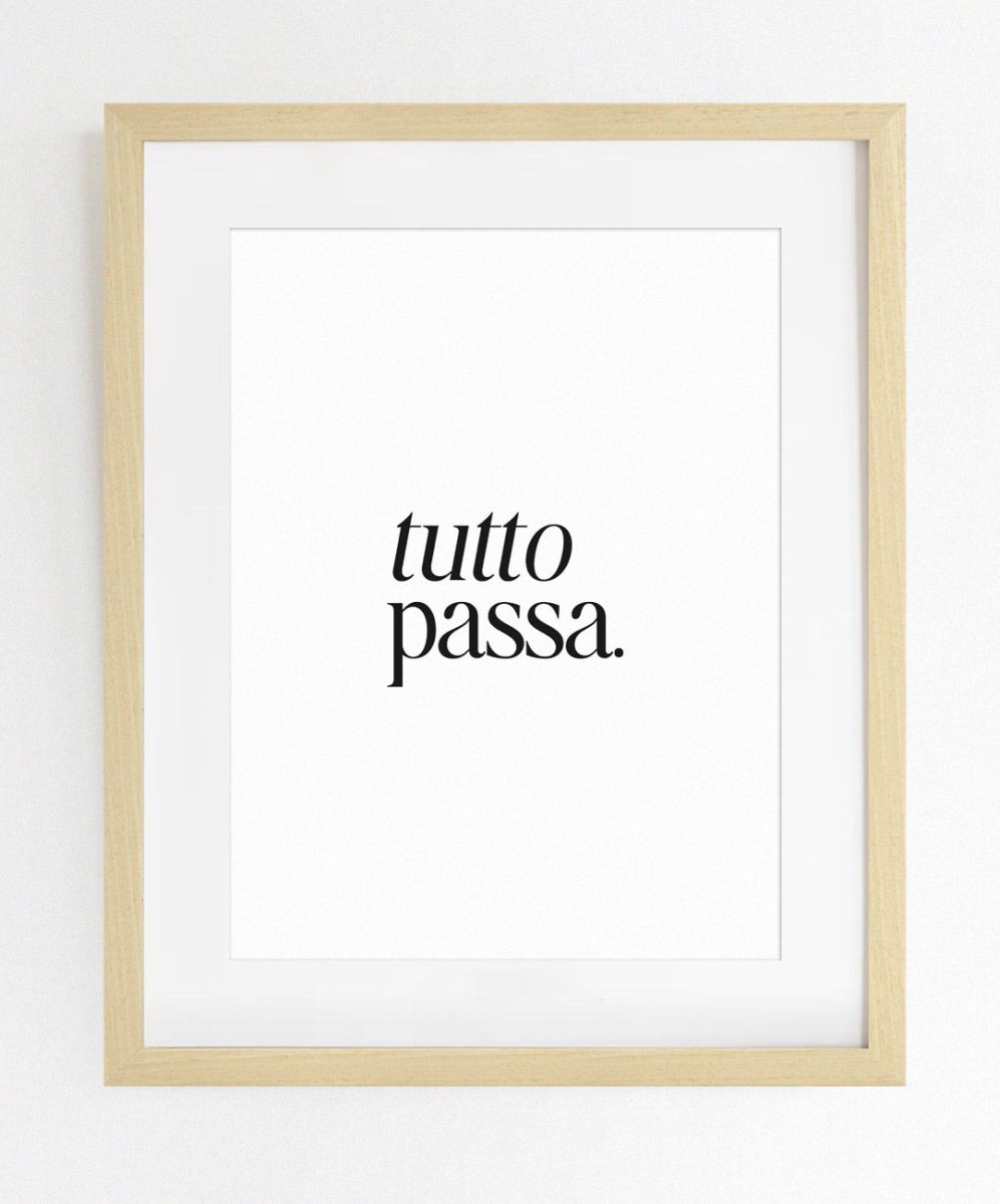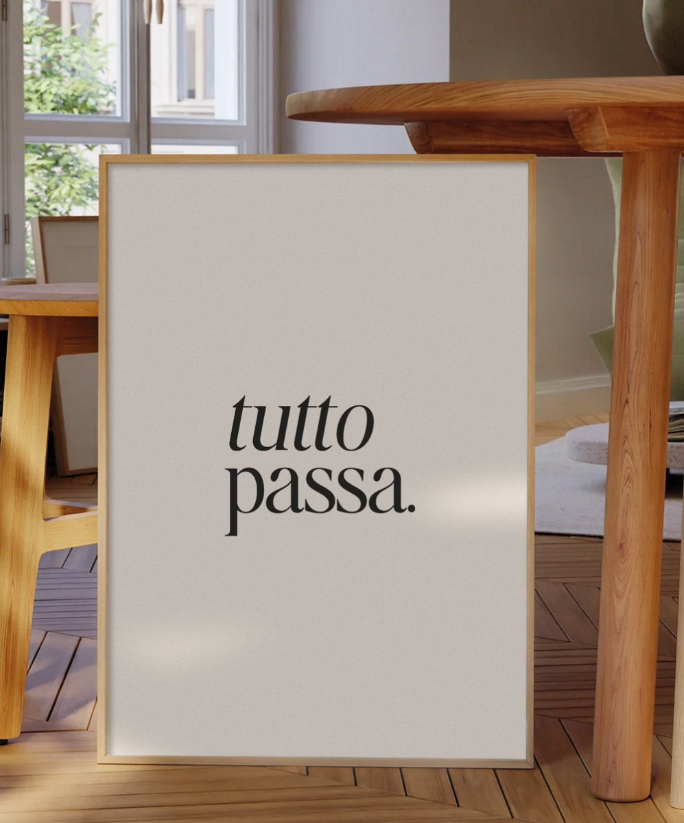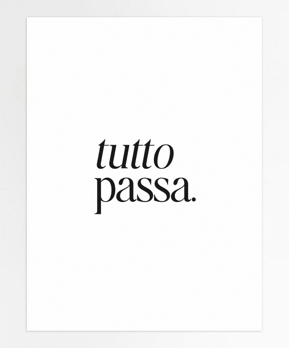 Inspire-se todos os dias com o poster 'tutto passa.' da Catita Illustrations. Este lembrete diário, destacado em letras pretas sobre um fundo branco, recorda-nos o que muitas vezes damos por garantido. Disponível em vários tamanhos, tanto em versão física como digital, é perfeito para motivar e elevar o seu dia-a-dia.